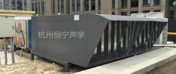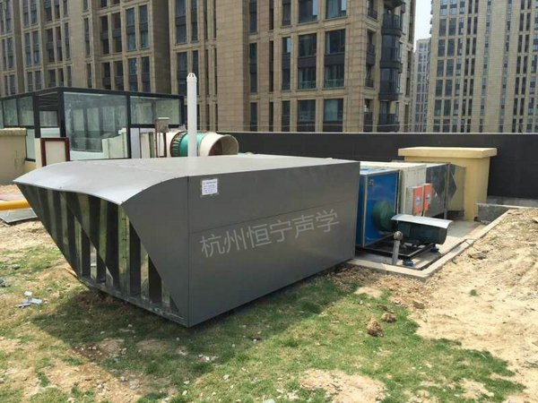 項目位(wèi)於石祥路的中鐵國際城商場(chǎng)四樓屋頂,為三樓餐飲廚房排油煙風機,風(fēng)機一共三台,相互距離(lí)較遠,隻能單采取降噪措施。